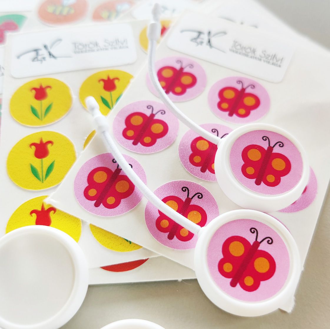 A cipők jelölése évekig tartó fejtörést okozott nekünk, míg megtaláltuk a megfelelő megoldást rá, és ez nem más, mint a CIPÖTTY. Sem a pecsét, sem a matrica nem volt 100%-os. A cipő belsejébe ragasztott matrica lemorzsolódhat, felpöndörödhet, köddé válhat, a pecsét lenyomata lekophat a surlódástól. Ez a kis kör alakú gombocska, viszont megoldást nyújt a problémára. A rugalmas gumival ellátott műanyag gombocska mini ovis jelmatricával ellátva nem csupán praktikus, hanem igazán menő is!