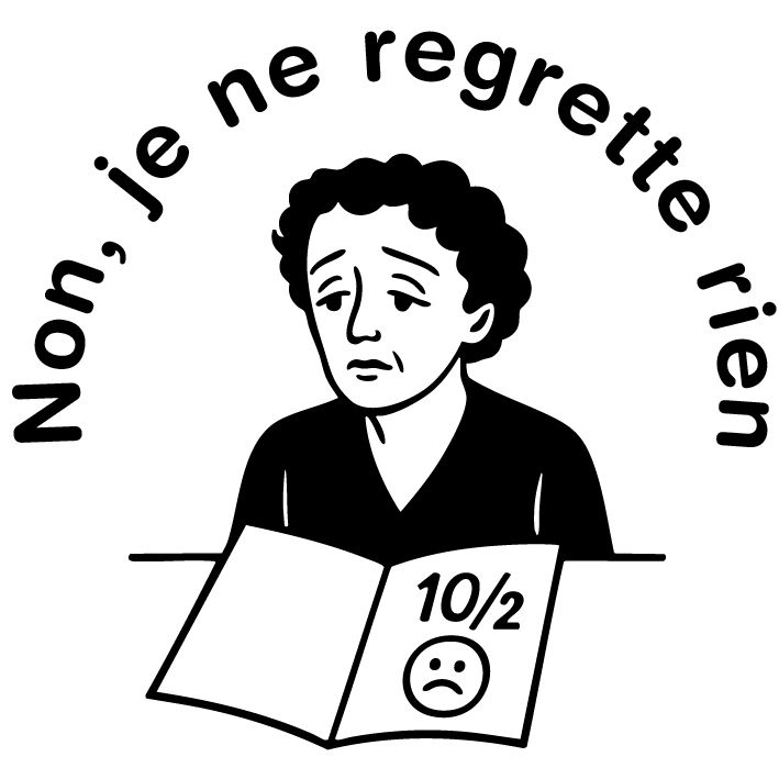 “Non, je ne regrette rien” talán a leghíresebb dala a chanson énekesnőnek, nem bánok semmit sem, még azt sem, hogy nem sikerült a dolgozatom.