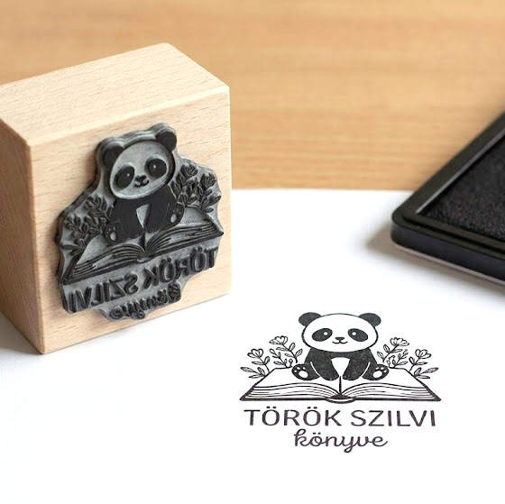 Pandás ex libris pecsét – Névre Szóló Gyerek Nyomda Könyvekbe 3×3 cm