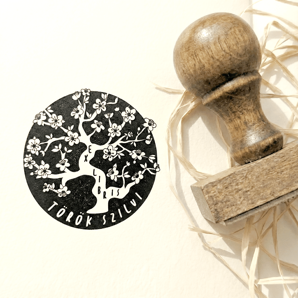 Sakurás Ex Libris Pecsét – Egyedi Névre Szóló Könyvjelölő