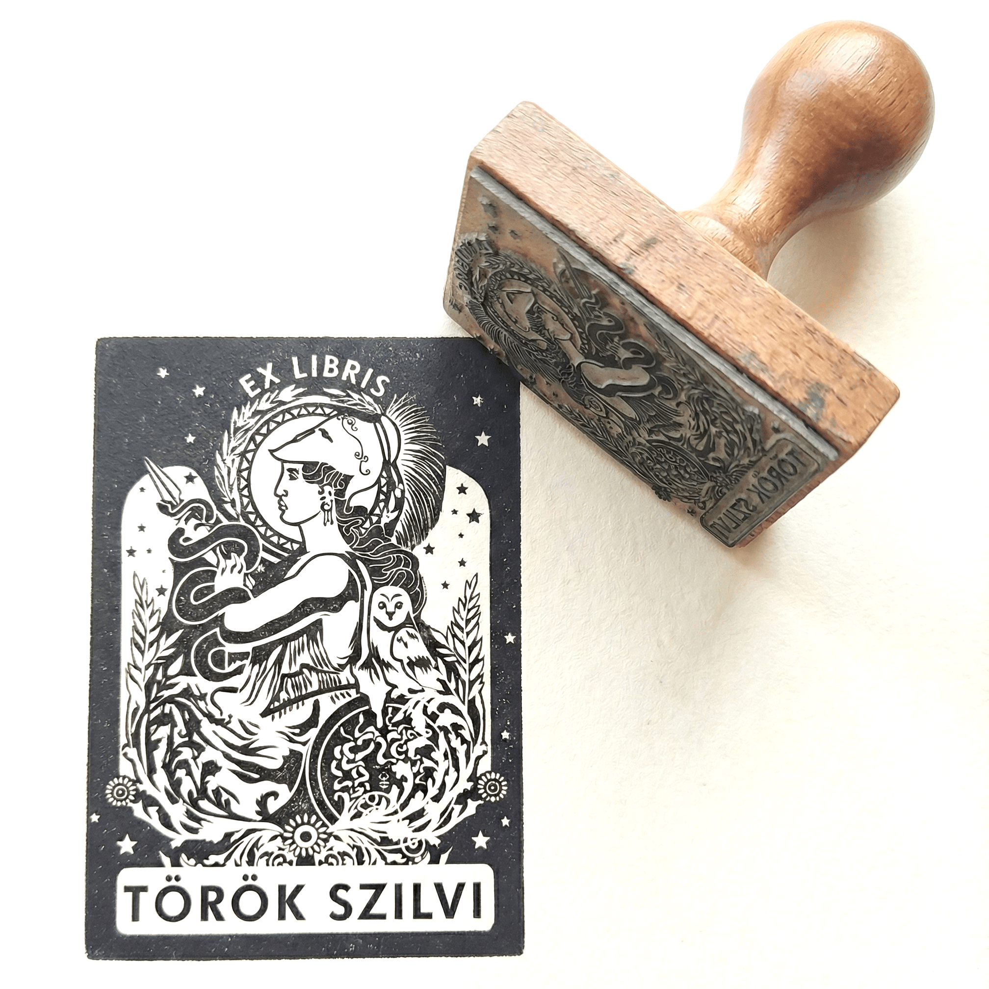 Minta: Pallas Athéné”Ex Libris” felirattal és egyedi névvel
