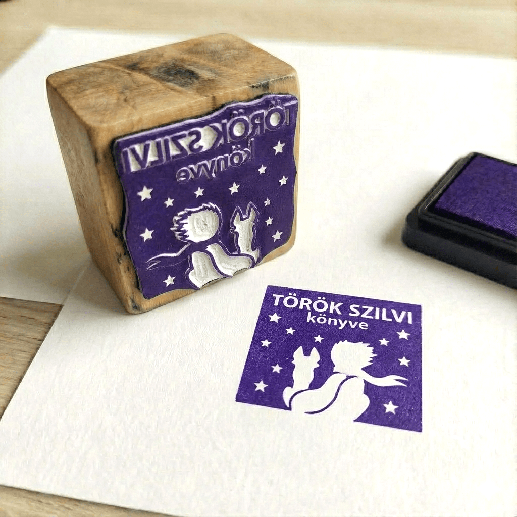 EX LIBRIS pecsét / Kis kocka / Névre szóló Ex Libris Pecsét / Könyvpecsét – Kis herceges – 3×3 cm