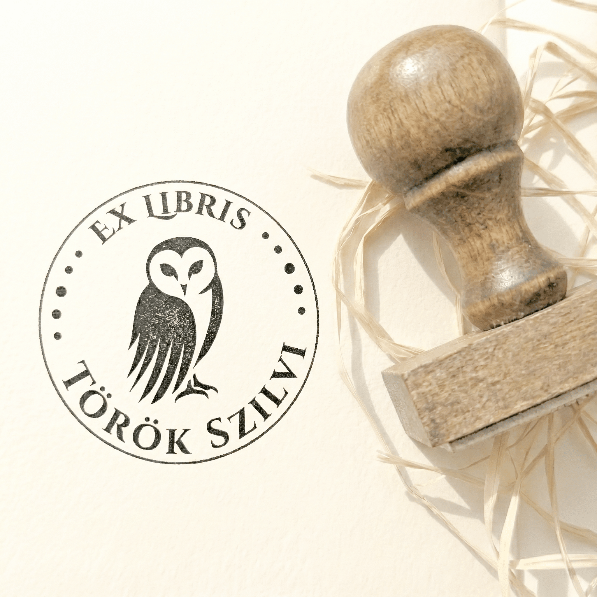 Gyöngybagoly Ex Libris Pecsét – Egyedi Névre Szóló Könyvjelölő