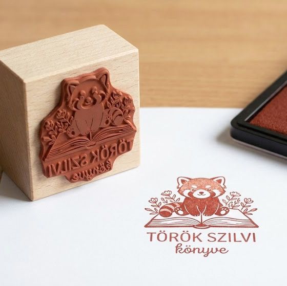 EX LIBRIS pecsét / Kis kocka / Névre szóló Ex Libris Pecsét / Könyvpecsét – Vörös panda 3×3 cm