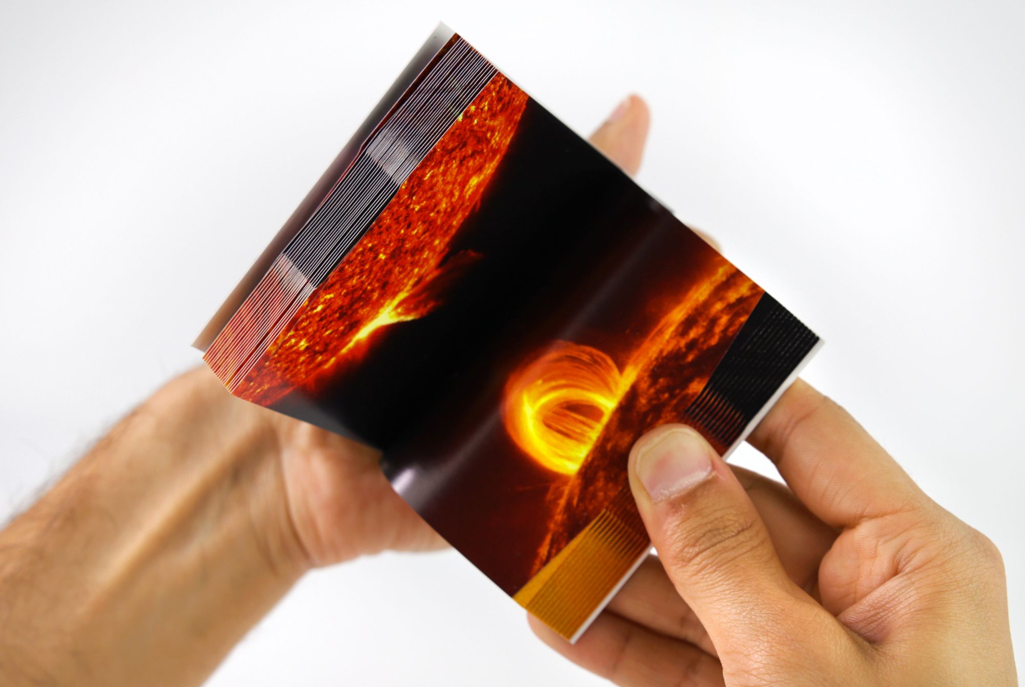 Merülj el központi csillagunk ragyogásában ezzel a lenyűgöző „cinemagic” flipbookkal! Fedezd fel a Nap dinamikus felszínét hat különálló animációs sorozaton keresztül. A Flipboku különleges vágási technikájának köszönhetően az animációkat – a napkitörésektől a forgásig – egyszerűen a hüvelykujjad helyzetének változtatásával (fent, lent, oldalt) váltogathatod. Ez a könyv a kozmikus energia és az éltető fény tiszteletére született.