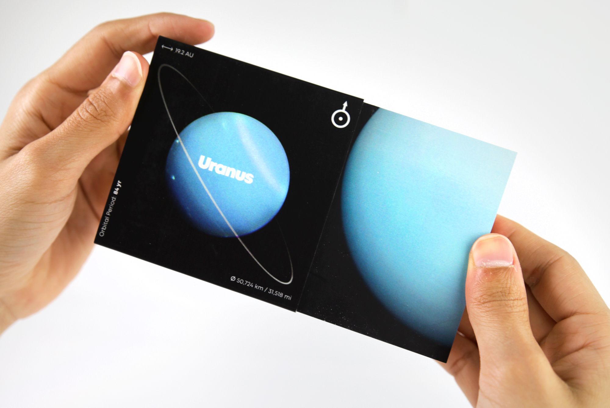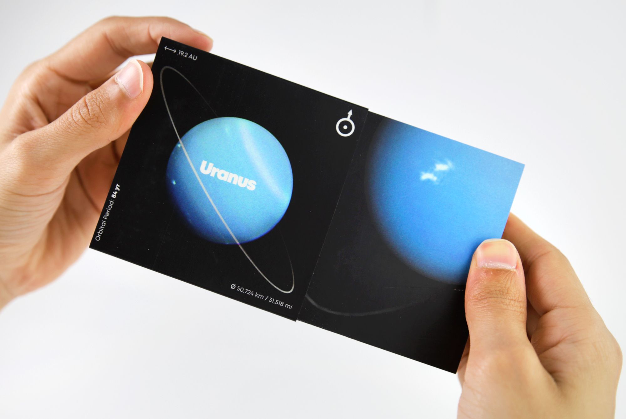Merülj el az Uránusz hűvös, kékeszöld világában ezzel az interaktív flipbookkal! Fedezd fel a bolygó egyedi jellemzőit – például a különleges, oldalára dőlt tengelyforgását – hat különálló animációs sorozaton keresztül. A Flipboku technológiájának köszönhetően a hüvelykujjad helyzetének változtatásával (fent, lent, oldalt) válthatsz a vizuális trükkök között. A Naprendszer hetedik bolygója a titokzatosság és a fagyos messzeség szimbóluma.