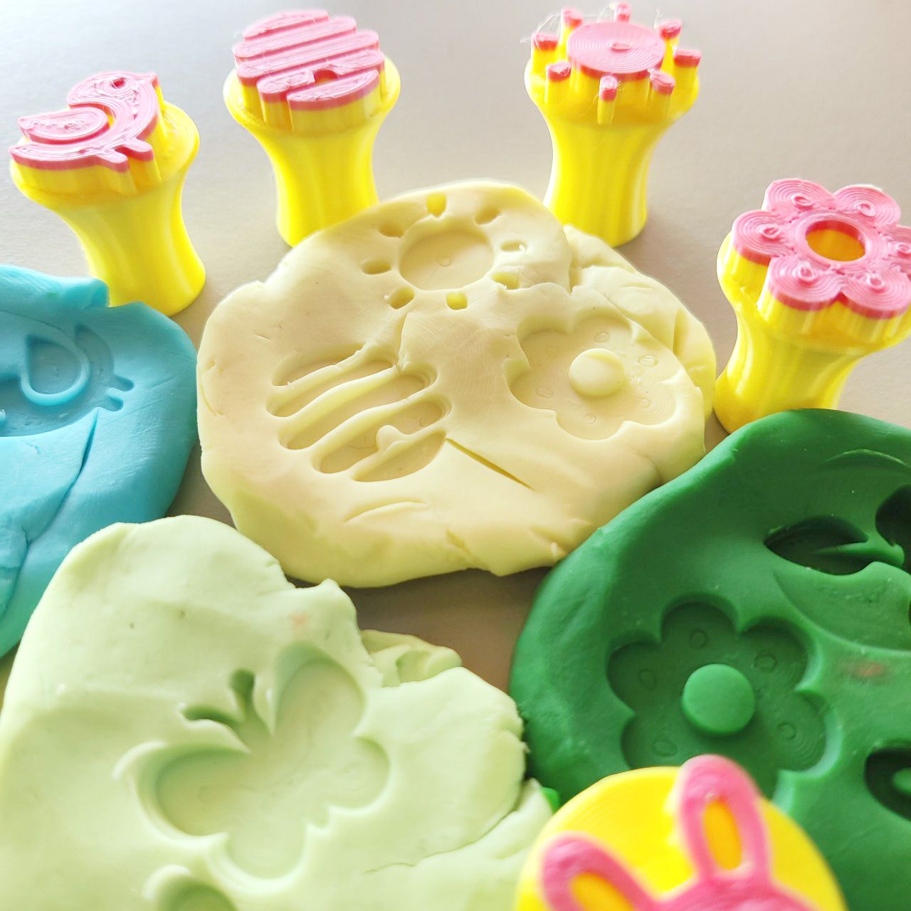 🐰 Tavaszi Kaland a Gyurmaasztalnál – Kreatív Nyomdaszett Ovisoknak