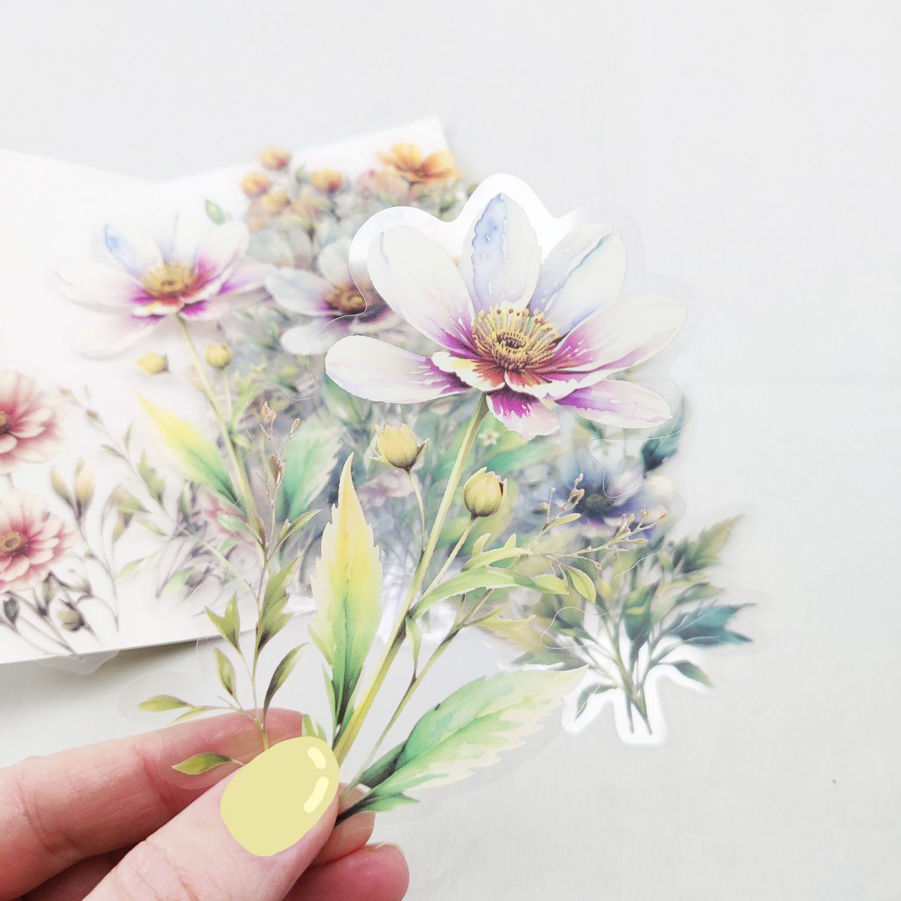 20 db nagyméretű fehér virágok matrica gyűjtemény. 10 féle virág, minden virág kétszer található meg a csomagban.