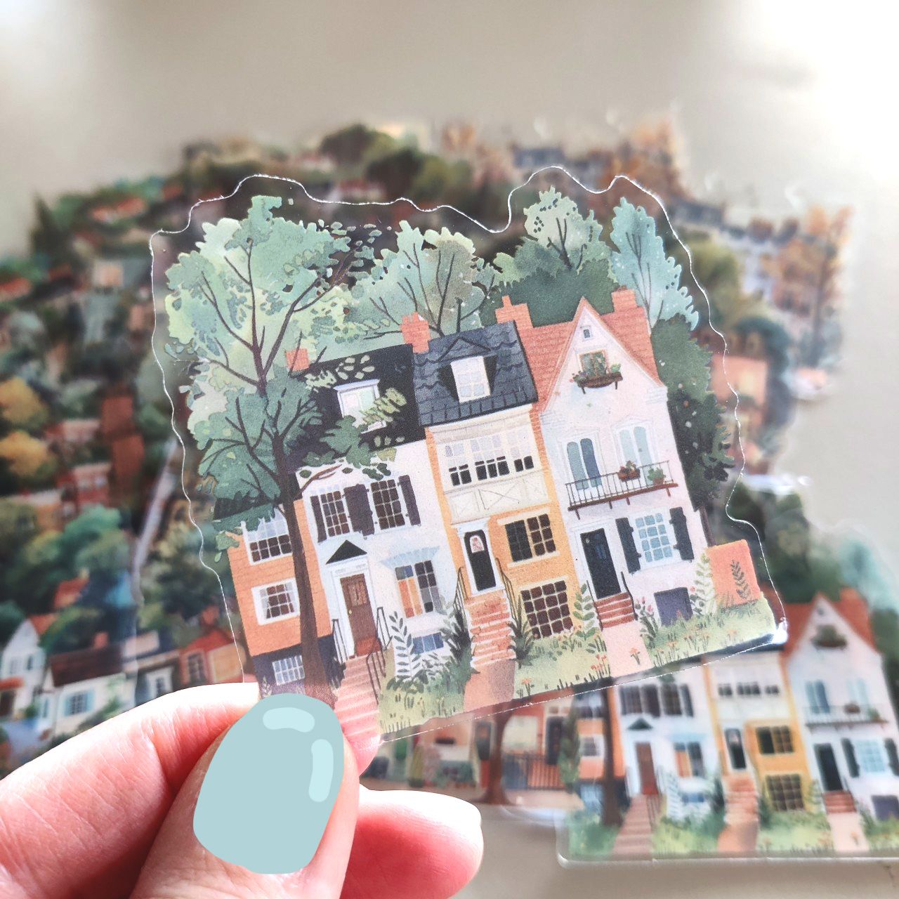 20 db külvárosi matrica gyűjtemény, egy-egy utcarészlet kétszer található meg a csomagban