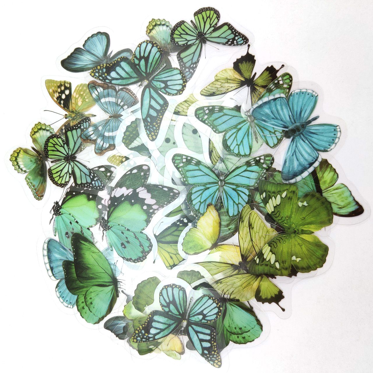 💚 Tedd különlegessé alkotásaidat ezekkel a zöld lepkés átlátszó matricákkal, amelyek egyszerre légiesek és stílusosak.